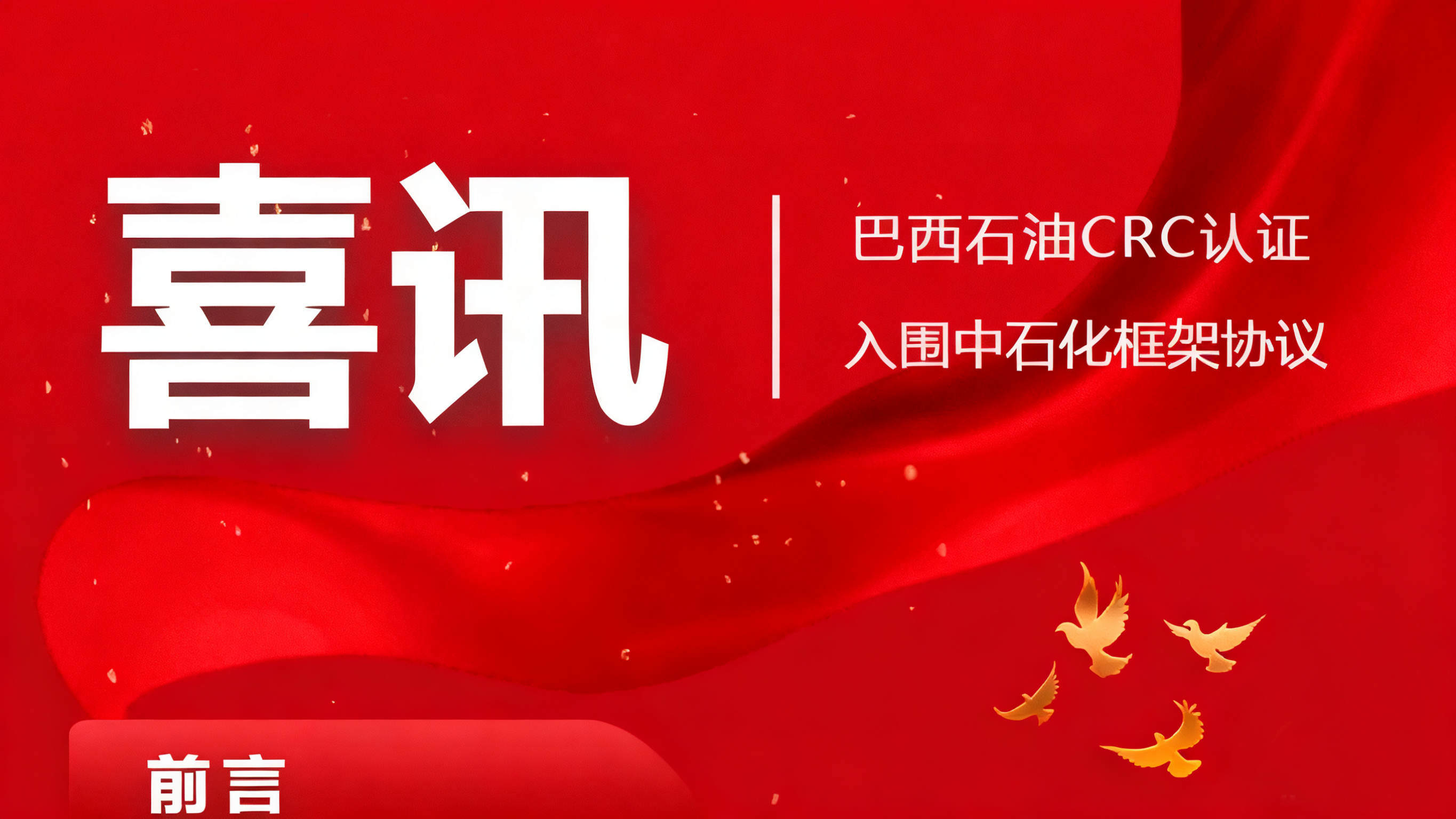 威?;C械有限公司近日接連斬獲國際國內(nèi)兩大高端市場入場券:成功通過巴西CRC認證,正式進入巴西石油供應商體系;同時入圍…